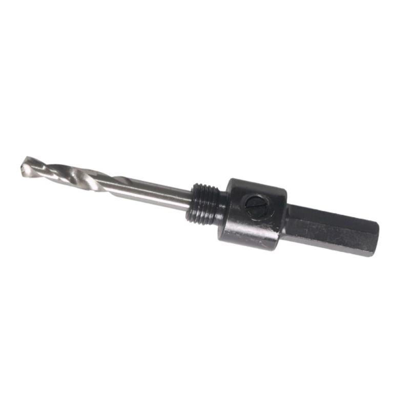 Uchwyt do otwornic bi-metalowych 08W006. Uchwyt montażowy HEX o średnicy 10mm. Uchwyt możemy stosować do otwornic o średnicach 14-30mm. Uchwyt wyposażony jest w wiertło pilotujące o średnicy 6mm. Należy pamiętać ze wiertło spełnia jedynie funkcję pilota i powinno poruszać się w uprzednio wykonanym otworze.