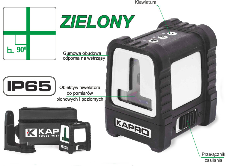 Laserowy firmy KAPRO jednego z najlepszych światowych producentów narzędzi pomiarowych, przeznaczony do wyznaczania pionu i poziomu podczas prac remontowo-budowlanych. Precyzyjne narzędzie przeznaczone do zawodowego użytku, spełniające oczekiwania wymagających użytkowników.