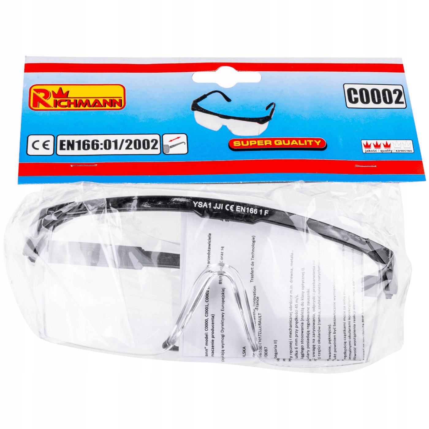 Okulary ochronne bezbarwne z regulowanymi zausznikami – C0002 Richmann