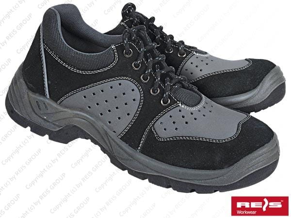 Półbuty bezpieczne UNIREIS wykonane z wysokiej jakości welurowej skóry bydlęcej w kolorze czarnym łączonej z szarą skórą typu nubuk sięgające przed kostkę. Obuwie posiada stalowy podnosek wytrzymały na uderzenia z energią 200 J oraz zgniecenia do 15 kN co zwiększa bezpieczeństwo pracy. Poliuretanowa podeszwa tego modelu jest antypoślizgowa. Dzięki szerokiemu zakresowi rozmiarów buty doskonałe zarówno dla kobiet i dla mężczyzn. Kategoria SB E SRA, spełniają wymagania norm EN20345 oraz EN20344.