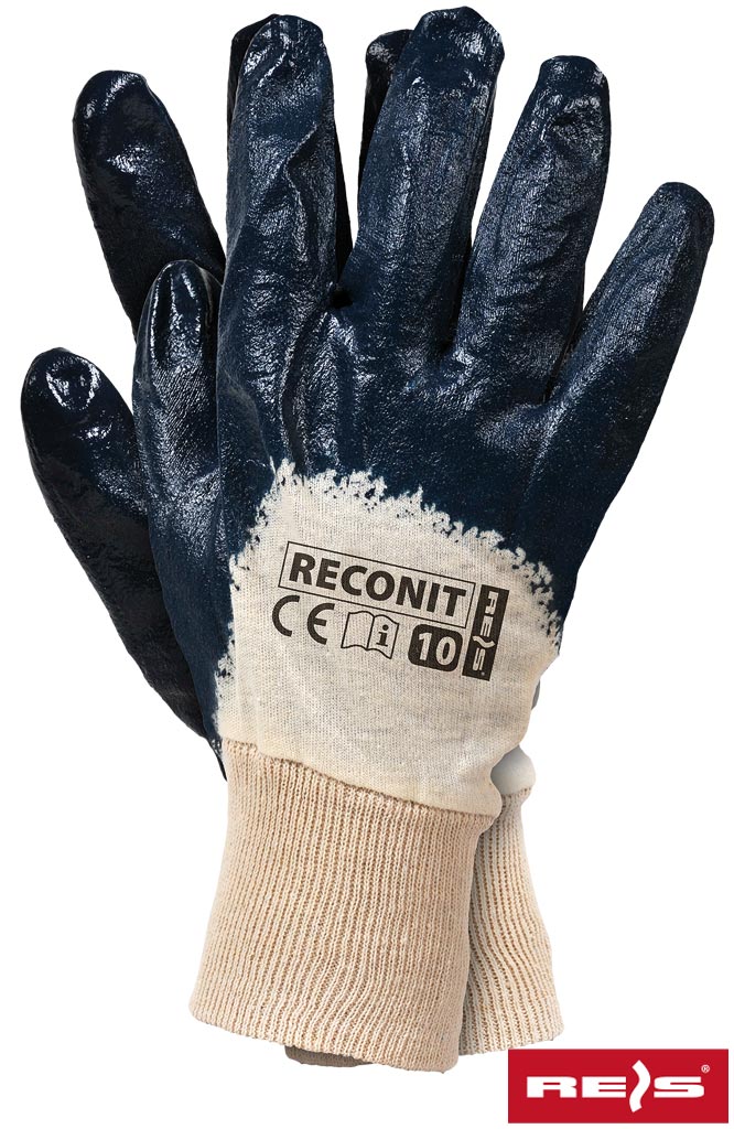 Rękawice powlekane nitrylem, zakończone dzianinowym ściągaczem RECONIT BEG r.9